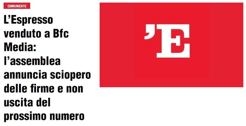 “L'ipotesi di cessione del settimanale L'Espresso non è un affare che riguarda un gruppo editoriale e i giornalisti che vi lavorano” ma, sottolinea Raffaele Lorusso, segretario generale della Fnsi (Federazione Nazionale Stampa Italiana), “esiste una questione molto più delicata che ha a che fare con il futuro dell'informazione e della democrazia nel nostro Paese” e che chiama in causa anche l’indifferenza “delle istituzioni, Governo in primis, e degli stessi editori”.